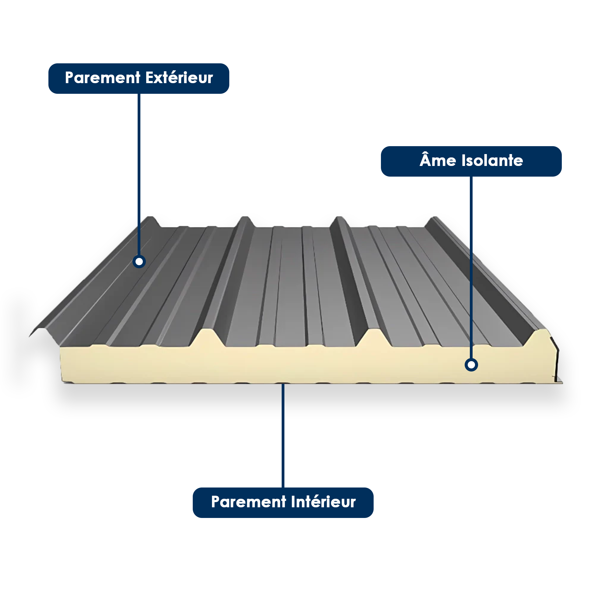 Les panneaux sandwich isolants sont des éléments de toiture composés de deux parements métalliques et d’une âme isolante en mousse rigide. Ils assurent à la fois isolation, résistance mécanique et finition esthétique en une seule solution prête à poser.